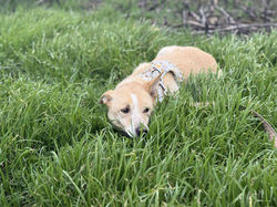 Little Grace came to us in 2016 when there were only a few dogs in the shelter. There is a man down the road from us who hoards dogs. He means well but doesn't provide great conditions for the dogs in his care. He brought Grace to us with a bunch of other dogs stuffed into his car. Grace was shy and was sort of absorbed into the shelter. She would duck and hide from contact. More recently, volunteers have been interacting with her and trying to show her life outside. Slowly, she is getting there. We would so love to get Grace into a home.